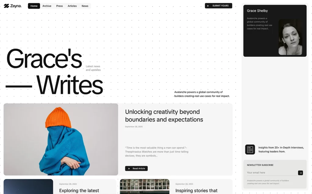 Zeyna comes with 30+ full demos designed for real use — not just placeholders. Each layout is built with thoughtful structure, clear content hierarchy, and beautiful modern design.